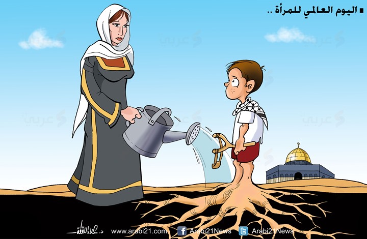 وقدم موقع “عربي 21” هذا الرسم معبرًا عن المرأة الفلسطينية في يومها العالمي: