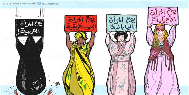 وسخر موقع “العربي الجديد” من المرأة العربية في العيد العالمي للمرأة بهذا الرسم: