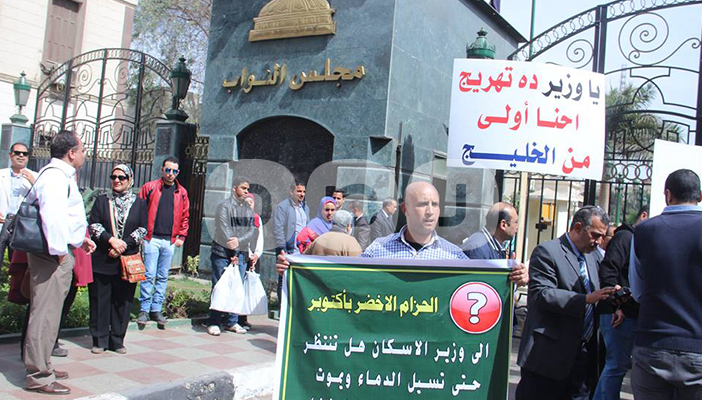 نظم أهالي منطقة الحزام الأخضر بالسادس من أكتوبر وقفة احتجاجية أمام مجلس النواب، للمطالبة بإعادة أراضيهم التي استولت عليها الدولة وهجرتهم منها.