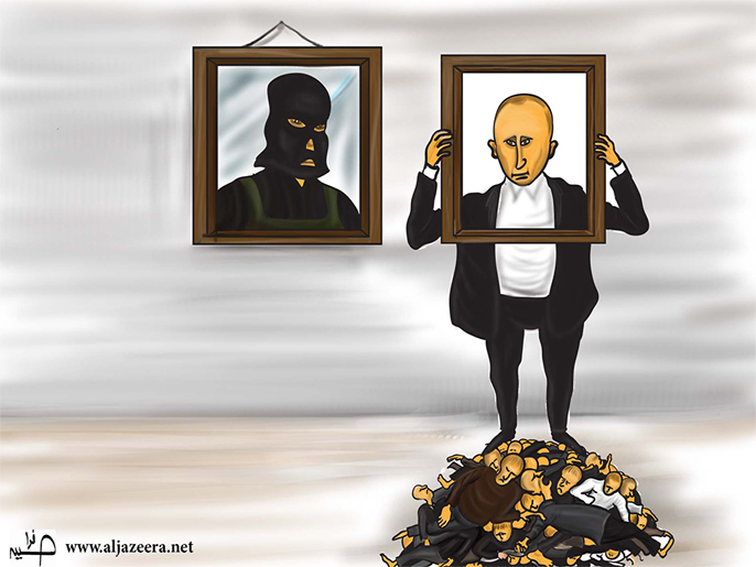 فنشر موقع “الجزيرة دوت نت” هذا الرسم ساخرا من إرهاب بوتين: