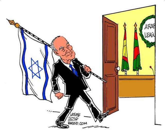 رسم  لاتوف أبو الغيط وهو يدخل للجامعة العربية حاملًا علم “إسرائيل”، في إشارة إلى أنه سيخدم مصالح الاحتلال “الإسرائيلي” .