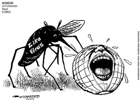 تناولت صحف ومواقع عالمية، رسومًا ساخرة من أحوال العالم، فسخر رسامو الكاريكاتير من إنهاك السيسي للشعب المصري بفشله، وخطر فيروس “زيكا” الذي يهدد العالم، وأيضًا من شراء بشار الأسد النفط من تنظيم “الدولة”.