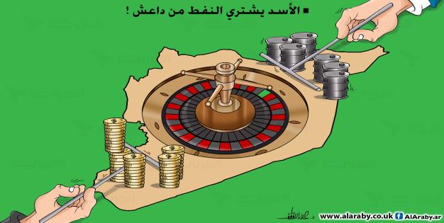 فنشر موقع “العربي الجديد”، الرسم التالي، ساخرًا من شراء بشار الأسد النفط من تنظيم “الدولة”: