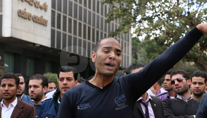 نظم، اليوم، حملة الماجيستير والدكتوراه، وقفة احتجاجية أمام مجلس النواب؛ للمطالبة بتعيينهم، مرددين “يا شريف بيه يا شريف بيه ابنك بيشتغل إيه”.