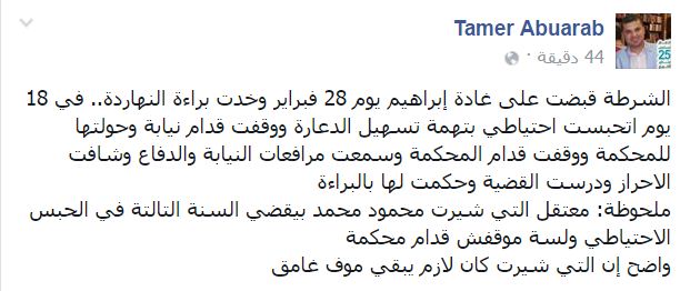 أبو عرب: غادة إبراهيم براءة بعد 18 يومًا.. ومعتقل التيشرت بقاله 3 سنين