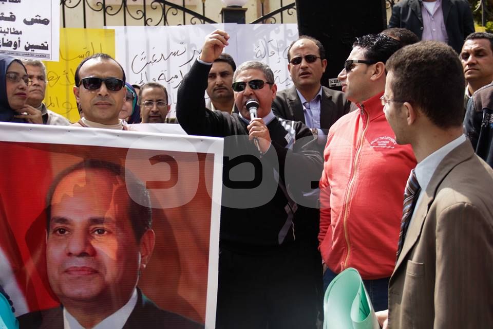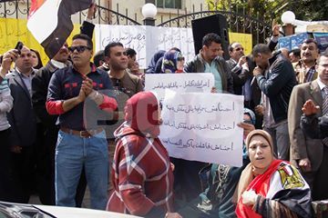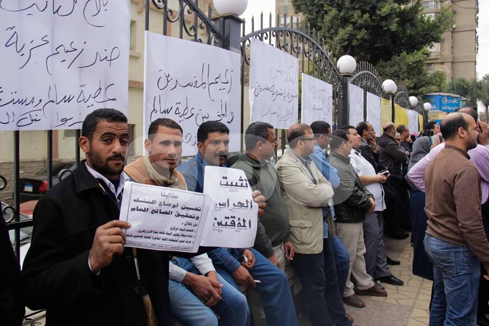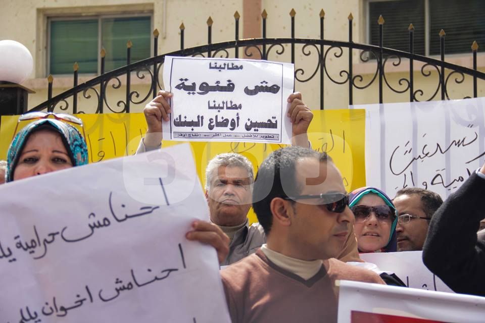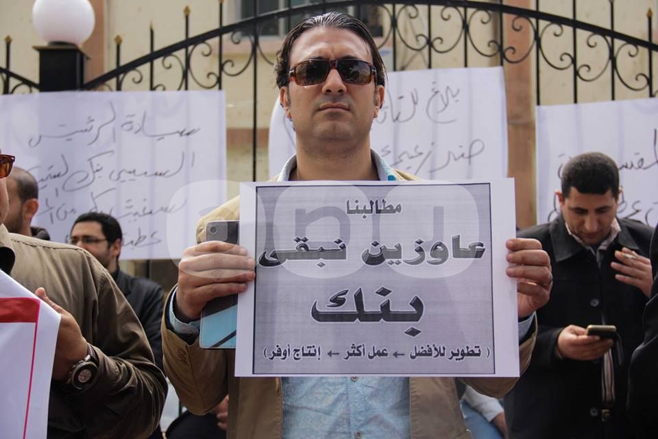 بالصور.. وقفة للعاملين ببنك التنمية للمطالبة بإقالة رئيس البنك