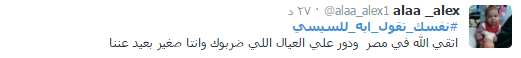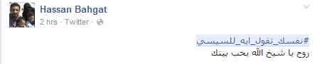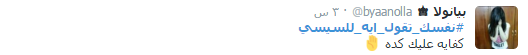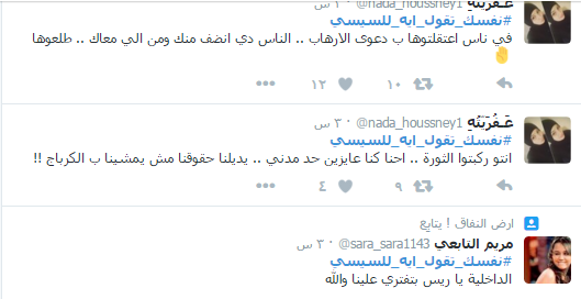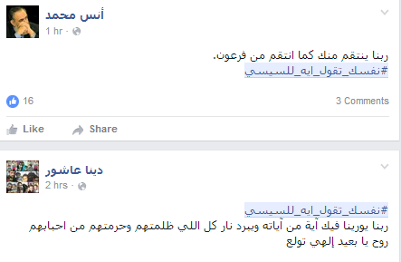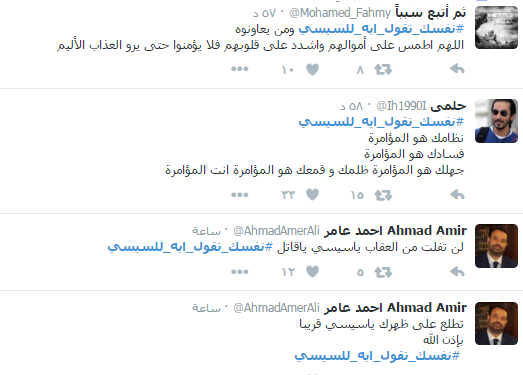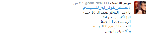وأعرب رواد الشبكة الاجتماعية عن سخطهم من انتهاج الحكومة لسياسة الترهيب تحت مزاعم محاربة الإرهاب، واتباع سياسة باطلة بهدف ممارسة “البلطجة”، بجانب إهمال الشباب وتدهور الاقتصاد وتجاوز سعر الدولار حاجز العشرة جنيهات، فضلا عن ارتفاع أسعار السلع الغذائية وزيادة نسبة الفقر.