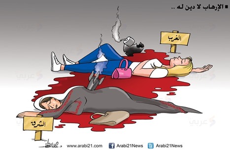 فنشر موقع “عربي 21” هذا الرسم عن الهجوم الإرهابي الذي وقع في بلجيكا: