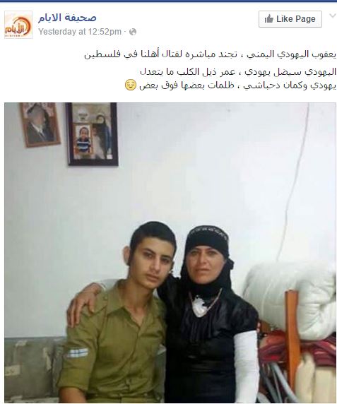 قالت صحيفة “الأيام” اليمنية: “يعقوب اليهودي اليمني، تجند مباشرة لقتال أهلنا في فلسطين”، وذلك تعليقًا على صورة لأحد الشباب اليمني اليهودي الذي انتقل لـ”إسرائيل”، وهو يرتدي زي الجيش “الإسرائيلي”.