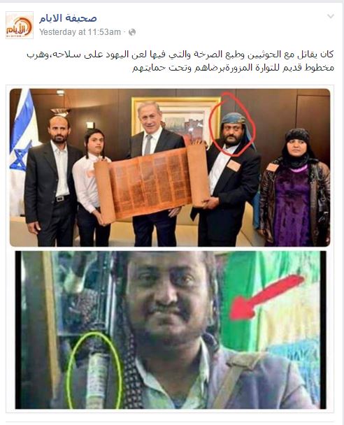 وأضافت الصحيفة عبر “فيسبوك”: “كان يقاتل مع الحوثيين، وهرَّب مخطوطا قديما للتوارة المزورة برضاهم وتحت حمايتهم”.