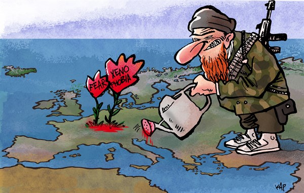 ونشرت صحيفة “نيويورك تايمز” هذا الرسم عن الوضع الأوروبي والذعر من الإسلام: