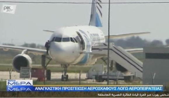 تمكن 3 أشخاص من المحتجزين داخل الطائرة المصرية التابعة لشركة “مصر للطيران” بمطار لارنكا بقبرص، من الهروب عبر قمرة قيادة الطائرة.