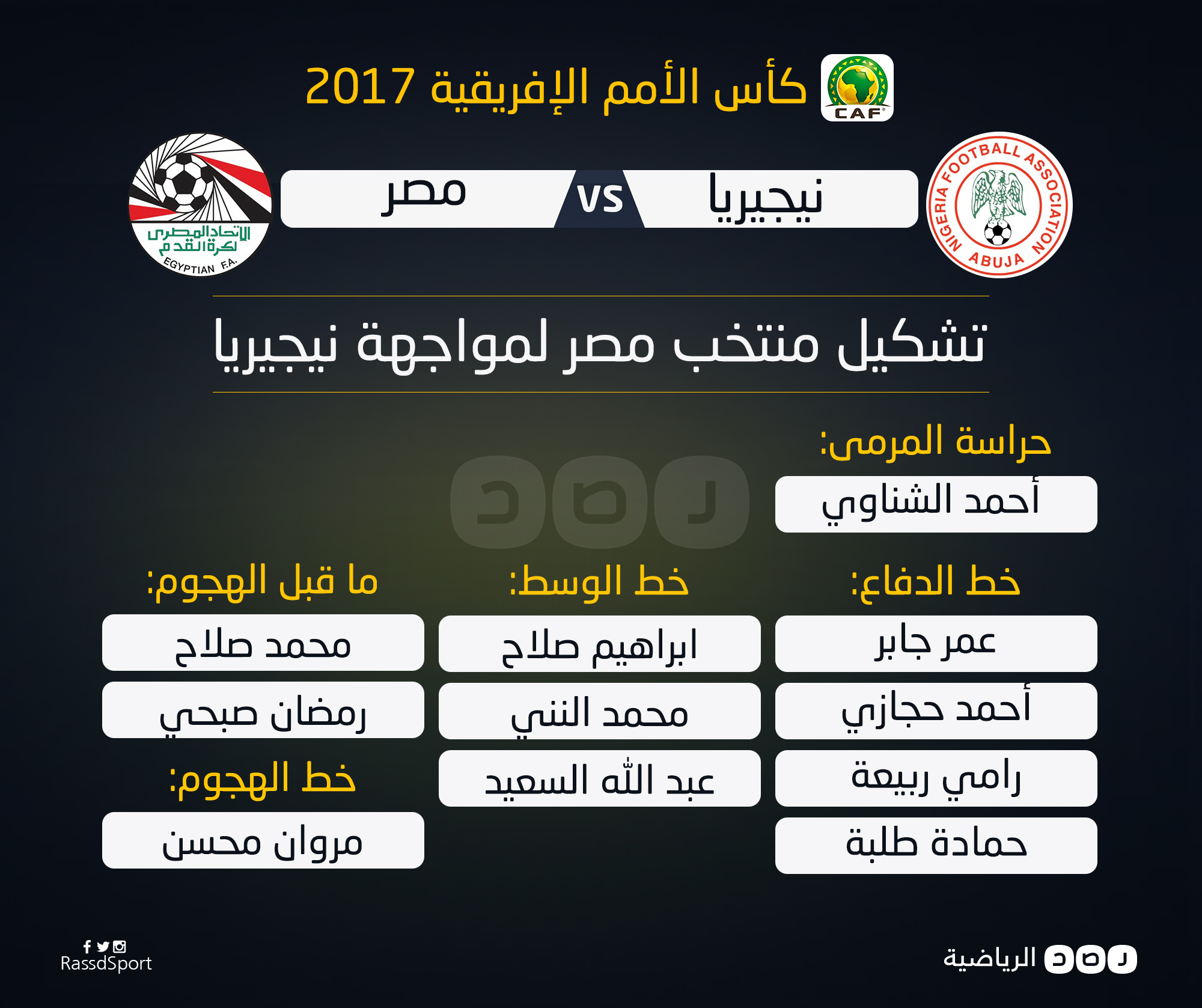 فاز منتخب مصر على حساب ضيفه نيجيريا في المباراة المقامة ضمن الجولة الرابعة من تصفيات أمم إفريقيا 2017 بالجابون، المقامة على استاد برج العرب بالإسكندرية.