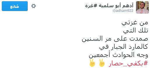 دشن رواد مواقع التواصل الاجتماعي “تويتر” هاشتاج تحت اسم “#بكفي_حصار”، للمطالبة بفك الحصار “الإسرائيلي” المفروض على قطاع غزة للعام العاشر على التوالي.
