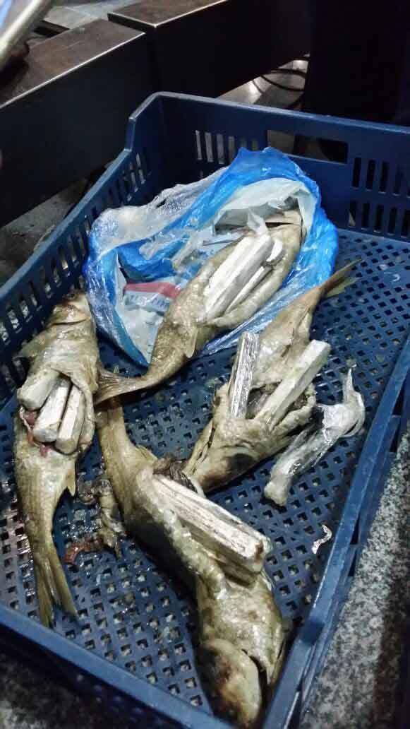 واشتبهت عناصر الأمن في حقيبة المتهم، أثناء مرورها على جهاز ( X. ray )، ومن ثَم تم تفتيشها وعثر بداخلها على كمية من الأسماك المملحة، ملفوفة بأكياس بلاستيكية، وورق من رقائق الألومونيوم وجد داخلها على كمية من مخدر الحشيش؛ حيث قام المذكور بإخفائها داخل أحشاء الأسماك، وتم إتخاذ الإجراءات القانونية اللازمة حيال تلك الواقعة.