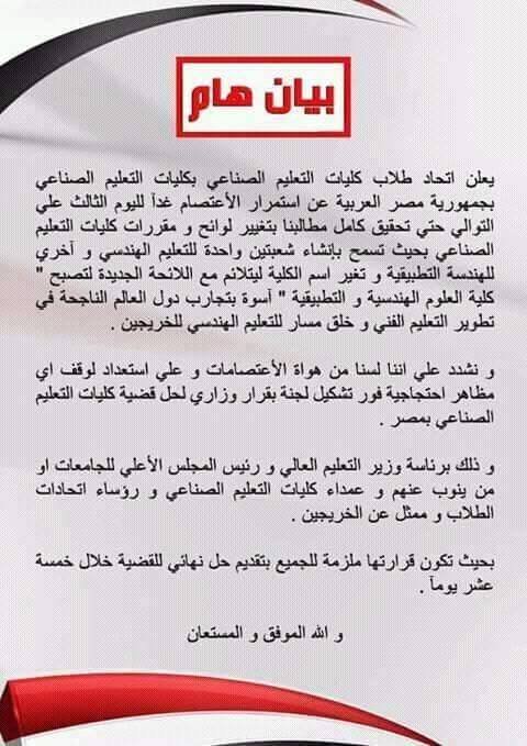 وذكر الطلاب المحتجون أن أهم مطالبهم هي: