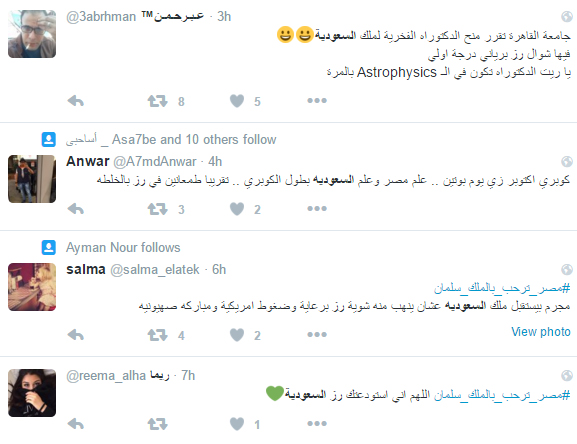 أما من “تويتر” فقد عبر متابعون على زيارة الملك سلمان كالتالي: