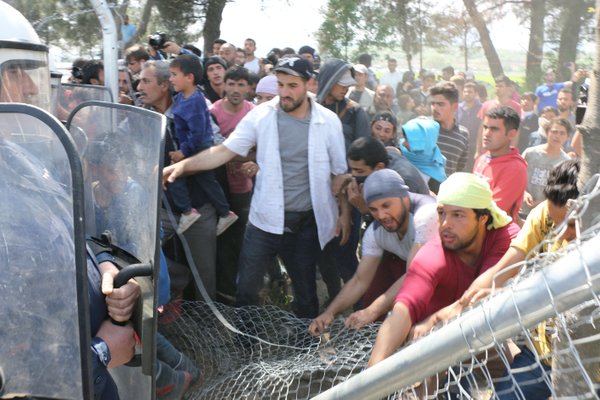وبحسب مراسل الأناضول، تجمع مئات الأشخاص، خلال فترة قصيرة، على طرفي السكة الحديدية في الجانب اليوناني المحاطة بأسلاك شائكة، وتمكّنوا من إزالة الأسلاك، واصطدموا مع الشرطة التي حاولت منعهم من الوصول إلى جانب الأسلاك الشائكة المقامة من قِبل الجيش المقدوني.