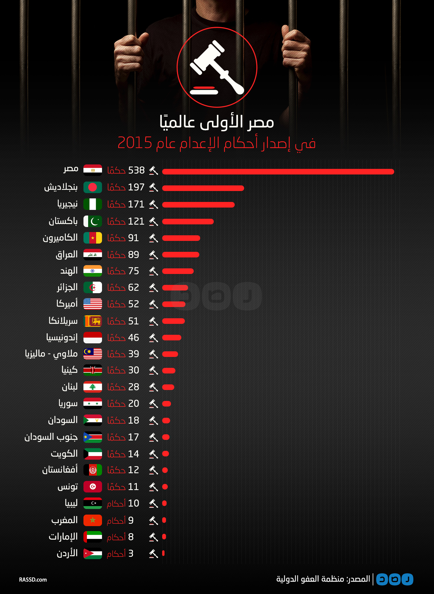 بالإنفوجرافيك.. مصر الأولى عالميًا في إصدار أحكام الإعدام عام 2015