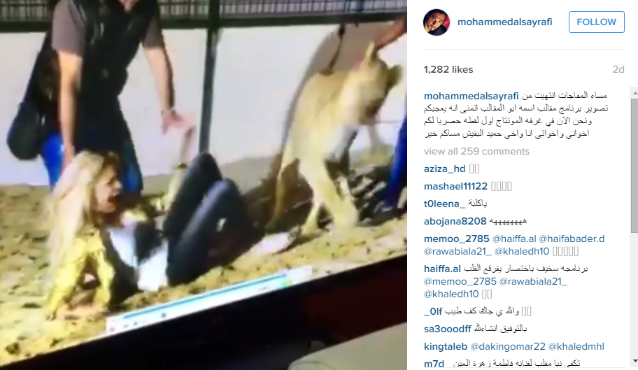 تعرضت الفنانة اللبنانية دومينيك حوراني لحادث انقضاض أسد عليها أثناء تصوير برنامج مع المذيع محمد الصيرفي؛ حيث تبين أن الحادث عبارة عن مقلب قام به محمد الصيرفي، مقدم برامج المقالب ونشره عبر حسابه على انستغرام.