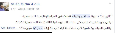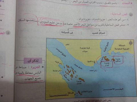 وتساءل المعلمون وأولياء الأمور عبر صفحات التواصل الاجتماعى “فيس بوك”: هل سيتم تغييرها من السيادة المصرية إلى السعودية بعدما قام عبدالفتاح السيسى بإهدائها لملك السعودية الملك سلمان؟