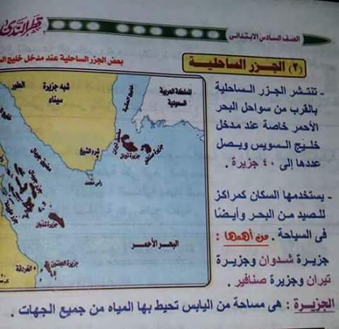 حالة من الجدل انتابت المعلمين وأولياء الأمور؛ إثر تنازل مصر عن جزيرتي تيران وصنافير الواقعتين في مدخل خليج العقبة على البحر الأحمر، للسعودية مقابل إبرام صفقات تجارية أخرى، لاسيما وأن الجزيرتين موجودتان داخل منهج الدراسات الاجتماعية للصف السادس الابتدائى أنها من أجمل الجزر المصرية القريبة من سواحل البحر الأحمر.