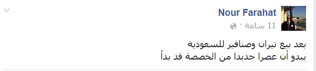 وقال -عبر منشور له على “فيس بوك”-: “بعد بيع تيران وصنافير للسعودية، يبدو أن عصرًا جديدًا من الخصصة قد بدأ”.