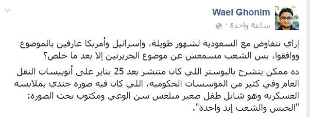 انتقد الناشط السياسي وائل غنيم، إعلان النظام عن الاتفاقيات بين مصر والسعودية لإسرائيل وأميركا قبل إعلانها للشعب المصري.