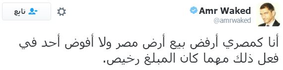 وقال واكد في تغريدة له عبر حسابه على “تويتر”: “عندما أغلب المؤيدين للبيع يقولون إنني لست مصري الجنسية، وهذا كذب، تستطيع عندها أن تقيس أين نحن متجهون بسرعة البرق”.