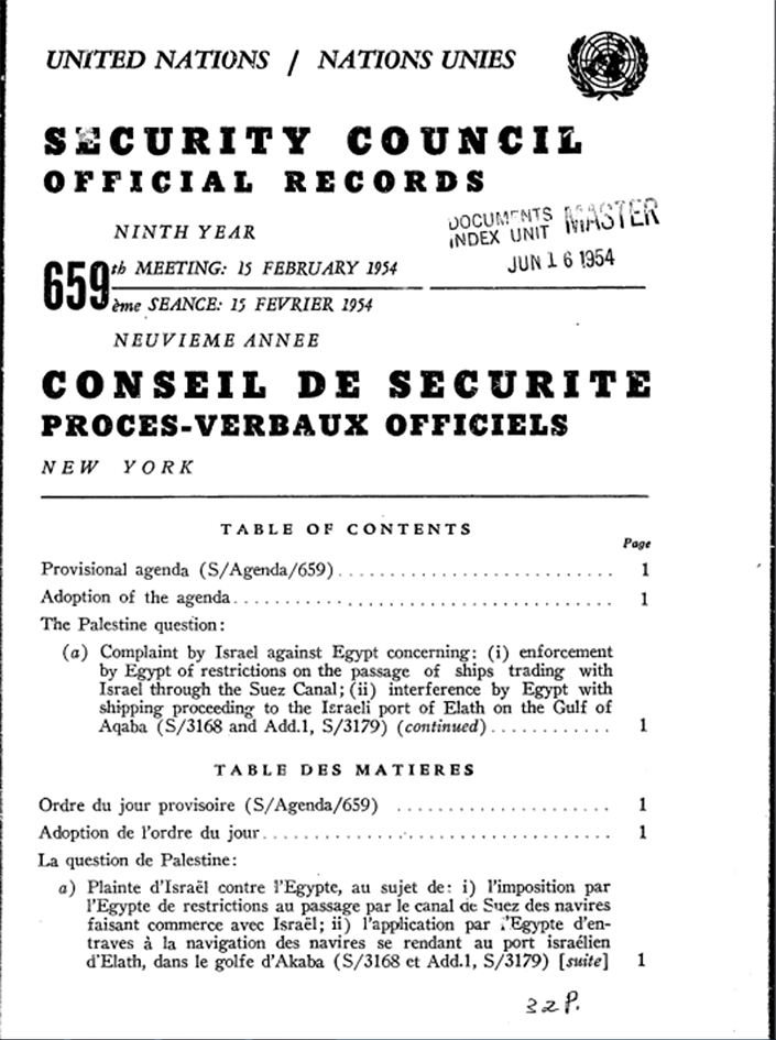 وحسمت وثيقة الأمم المتحدة الجدل الدائر حول ملكية الجزيرتين لمصر أم للسعودية، حيث أكدت بما لا يدع مجال للشك مصرية الجزيرتين، وذلك على لسان سفير مصر لدى الأمم المتحدة، الذي فند الادعاءات الإسرائيلية بعدم ملكية مصر للجزيرتين، وأكد سيطرة مصر على الجزيرتين منذ عام 1841 مرورًا باتفاقية سايكس بيكو ثم الحرب العالمية الثانية وحرب 1948 إلى وقت الجلسة عام 1954.