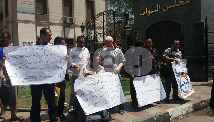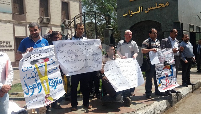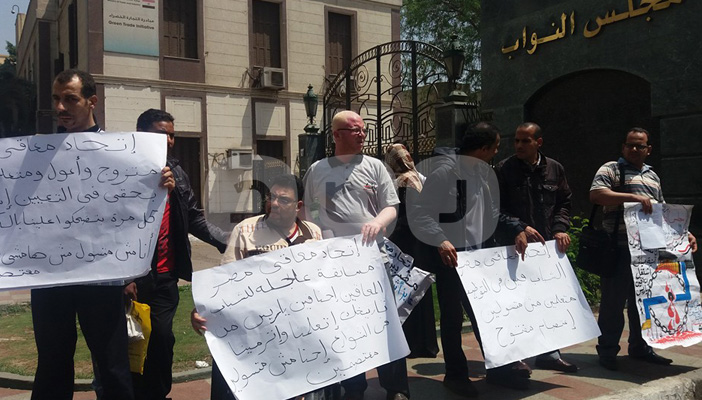 بالصور.. وقفة لذوي الاحتياجات الخاصة أمام “النواب” للمطالبة بالتوظيف