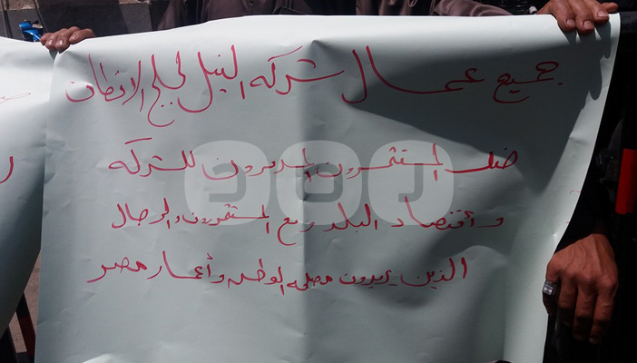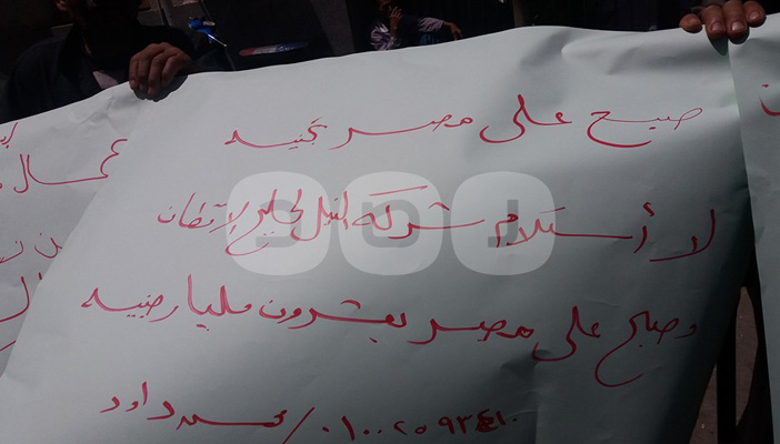 رفع العمال عدة لافتات تعبر عن استيائه من عدم تنفيذ الحكم الصادر بعودتهم للدولة.