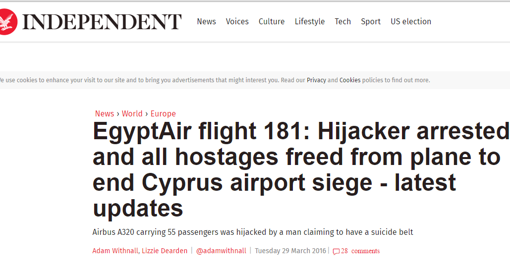 لكن نظام السيسي لم يتحدث حول هاتين القضيتين، إلا أن صبره نفد في مارس الماضي، بعد تقرير نشرته الصحيفة عن حادث اختطاف طائرة مصر للطيران، حينما نشرت قوائم حالات اختطاف الطائرات في مصر.