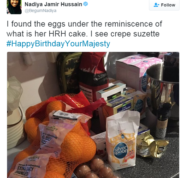 وقالت هيئة الإذاعة البريطانية “BBC” إن نادية لم تصدق نفسها، حين وصلها طلب مفاجئ من قصر باكنجهام الملكي وأبلغها أنه يريد منها إعداد كعكة للملكة بمناسبة عيد ميلادها التسعين.