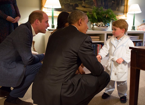 وكانت المفاجأة في ارتداء الأمير جورج “3 سنوات” لملابس النوم، أثناء مصافحته لأوباما بقصر كينسنجتون الملكي البريطاني، في حضور والده الأمير وليام وزوجته كيت ميدلتون.