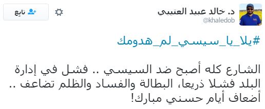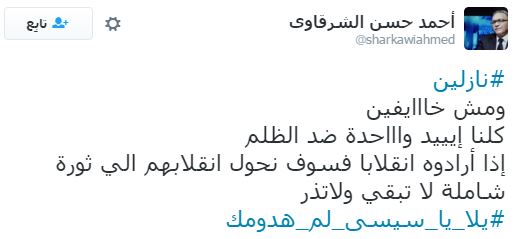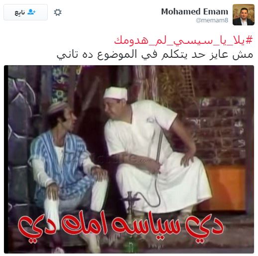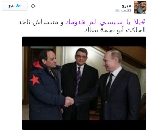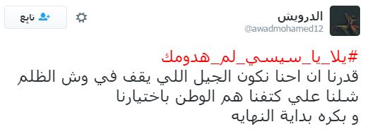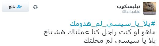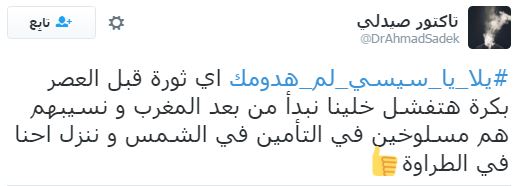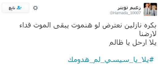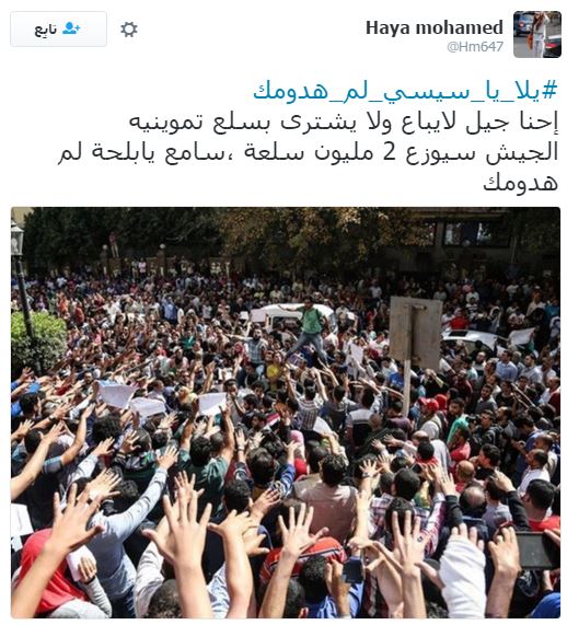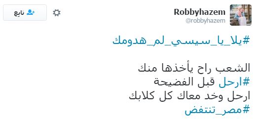 تصدر هاشتاج “يلا يا سيسي لم هدومك” قائمة الهاشتاجات الأكثر تفاعلًا على موقع “تويتر”، وذلك قبل انطلاق مظاهرات 25 أبريل التي دعت لها العديد من القوى السياسية، ردًا على تنازل عبدالفتاح السيسي عن جزيرتي تيران وصنافير للسعودية.