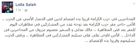 رفضت قوات الأمن التي تحاصر مقر حزب الكرامة، الكائن بشارع الموسيقار علي إسماعيل، بمنطقة الدقي، فك الحصار عن المقر إلا بعد تسليم المتظاهرين أنفسهم.