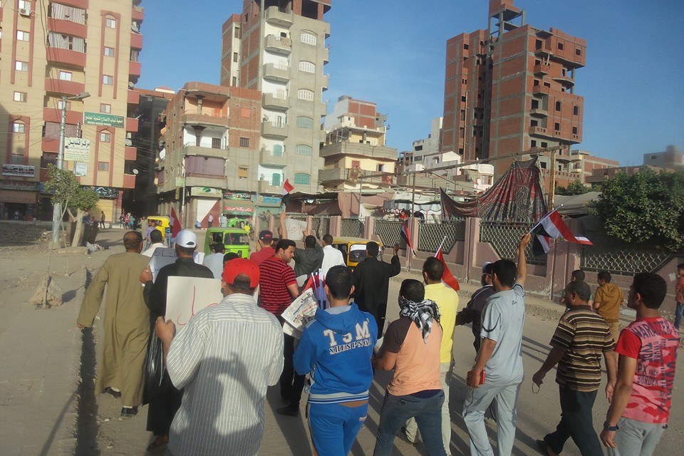 نظم التحالف الوطني لدعم الشرعية بأنشاص الرمل مسيرة رفع المشاركون فيها لافتات للمطالبة بإسقاط النظام، ومنددة ببيع الجزيرتين.