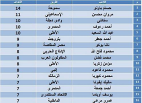 يأتي مروان محسن، مهاجم الفريق الأول لكرة القدم بالنادي الإسماعيلي، في المركز الثاني برصيد 11 هدفًا، أما المركز الثالث يتقاسمه كل من عبدالله السعيد لاعب الأهلي، وأحمد رؤوف لاعب المصري، وستانلي مهاجم وادي دجلة، برصيد 10 أهداف، لكل منهم.