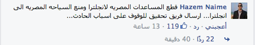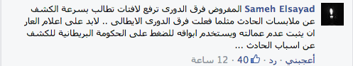وأهاب السيسي بالسلطات البريطانية المعنية القيام ببذل العناية الواجبة وتكثيف تحرياتها وجهودها من أجل الكشف عن غموض هذا الحادث واستجلاء أسباب وقوعه، وتحديد الجناة وإلقاء القبض عليهم لينالوا عقابًا رادعًا بموجب القانون، أخذًا في الاعتبار الحق الأصيل لأسرة المواطن المصري الفقيد في التعرف على أسباب وفاته وتحقيق القصاص العادل.