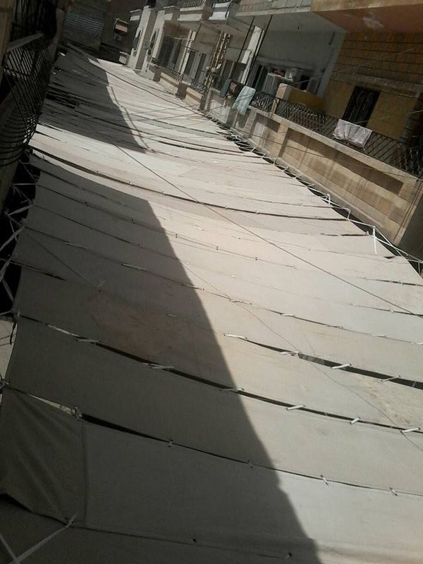 نشر عدد من النشطاء، على مواقع التواصل الاجتماعي “فيس بوك” و”تويتر”، عددًا من الصور، لأغطية ممدودة بين المباني في الشوارع الضيقة داخل المدينة.