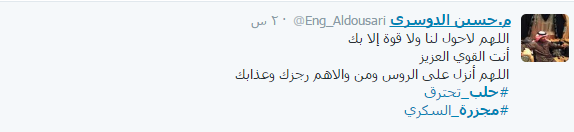 وقال حسين الدوسري: “اللهم أنزل على الروس ومن والاهم رجزك وعذابك”.