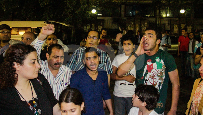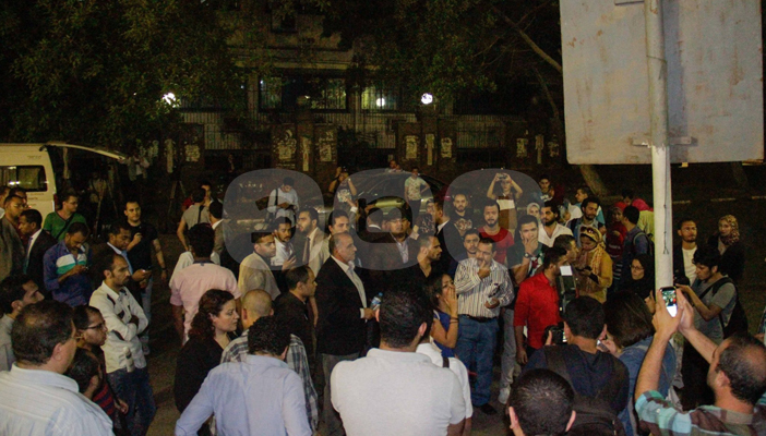 تظاهر المعتصمون بمقر نقابة الصحفيين، عقب علمهم بحبس الزميلين عمرو بدر ومحمود السقا 15 يوما علي ذمة التحقيقات بعد أن ألقي القبض عليهم من داخل مقر نقابة الصحفيين أمس