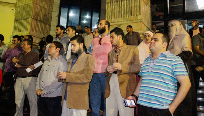 تظاهر المعتصمون بمقر نقابة الصحفيين، عقب علمهم بحبس الزميلين عمرو بدر ومحمود السقا 15 يوما على ذمة التحقيقات بعد أن ألقي القبض عليهما من داخل مقر نقابة الصحفيين أمس.