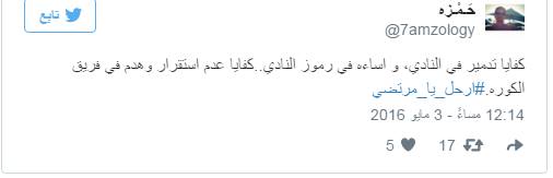 وتصدر هاشتاج “ارحل يا مرتضى” العبارات الأكثر تداولا على موقع التدوينات القصيرة “تويتر”، والتي عبرت جماهير الزمالك من خلاله عن حالة الضيق والاستياء من الحال التي وصل إليها الفريق الأول لكرة القدم خلال الموسم الحالي بسبب تدخلاته وتغييره للمدربين.