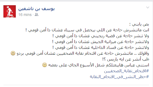 تداول عدد من رواد موقعا التواصل الاجتماعي “تويتر” و”فيس بوك” هاشتاجا بعنوان “حظر النشر”، عقب البيان الصادر بشأن قضية ضبط الزميلين عمرو بدر ومحمود السقا من داخل نقابة الصحفيين.