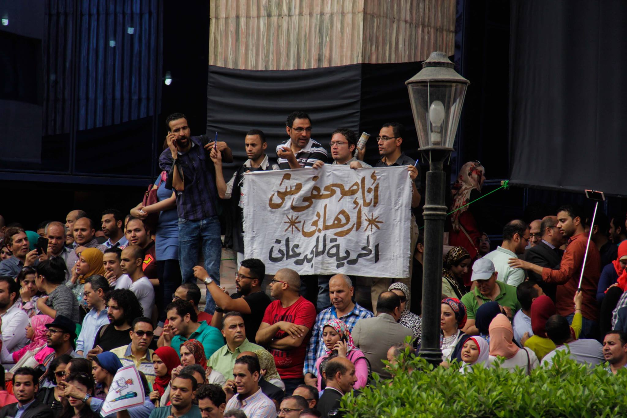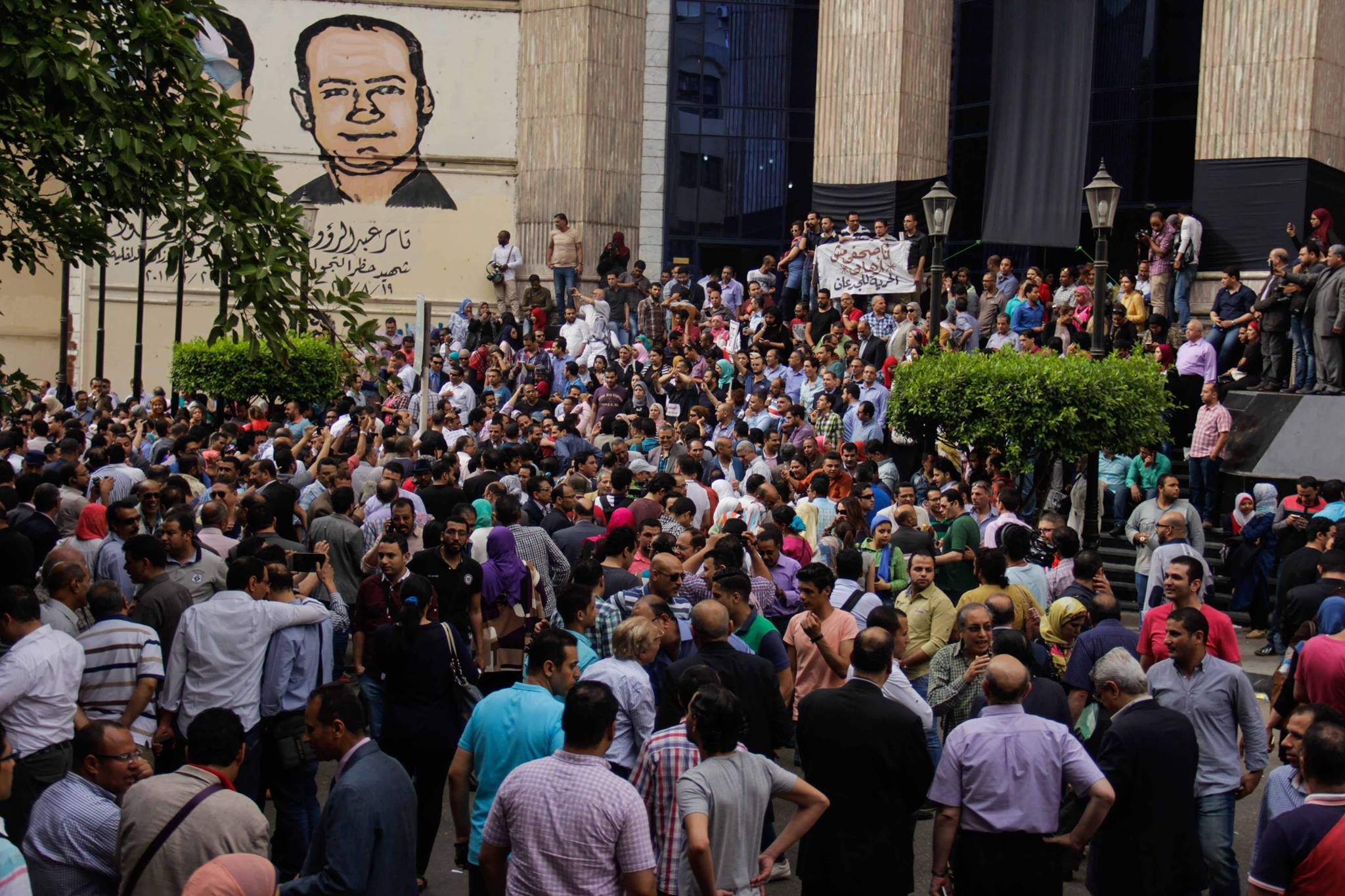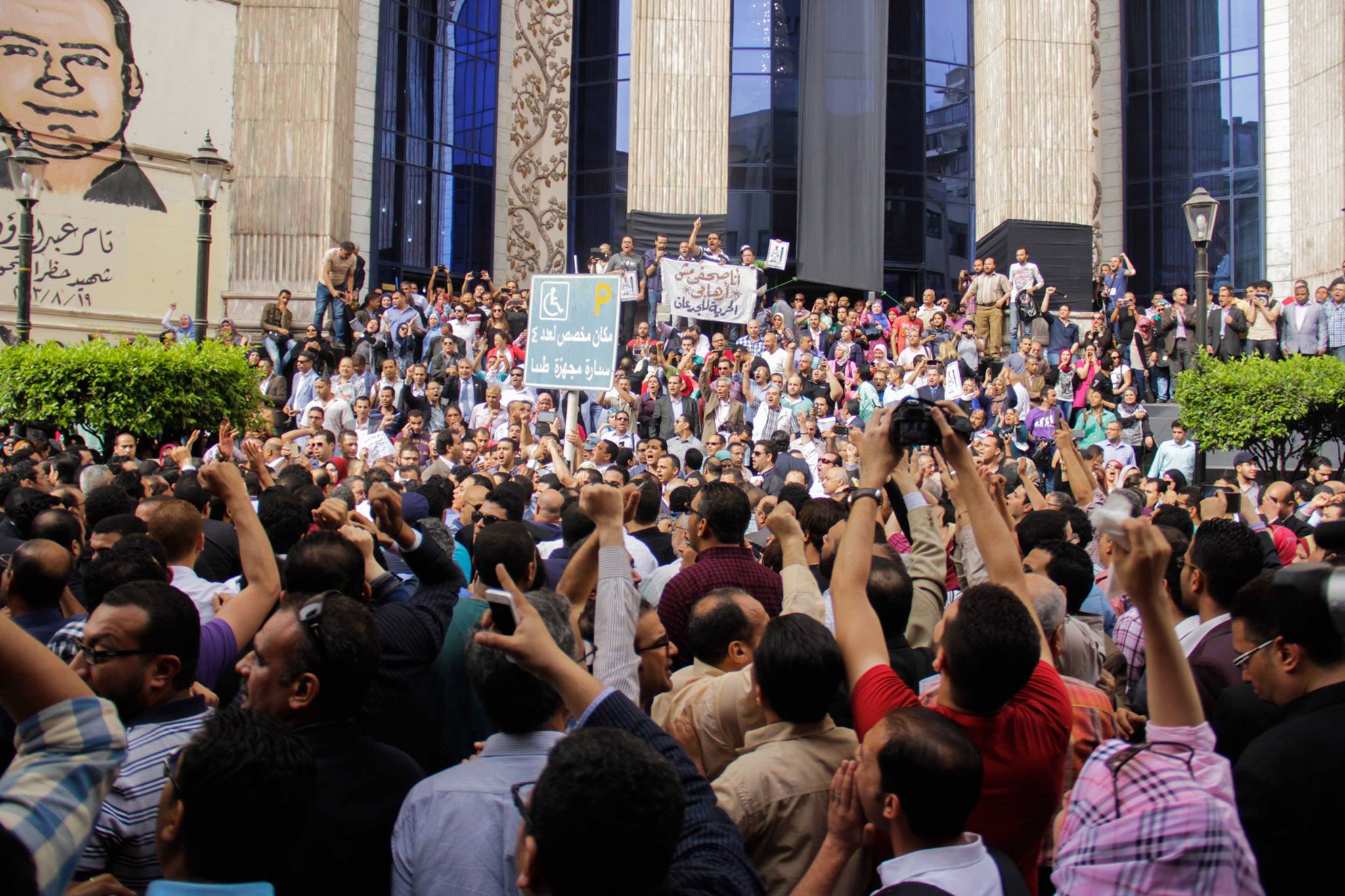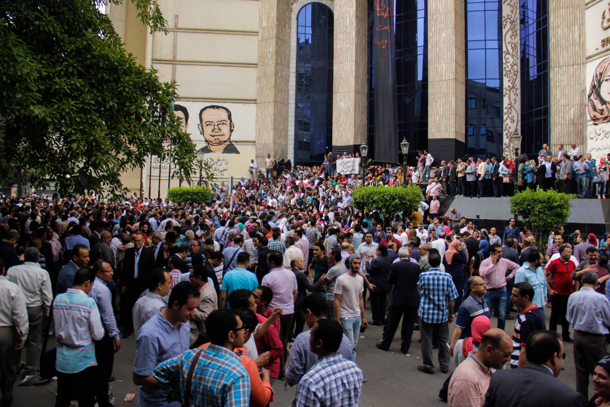 نظم الصحفيون المشاركون في الجمعية العمومية التي دعا إليها مجلس النقابة، وقفة احتجاجية، اليوم الأربعاء، عقب انتهاءها للمطالبة بكرامة النقابة التي أهدرت بعد اقتحام النقابة من قبل الداخلية، والقبض علي الصحفيان عمرو بدر ومحمود السقا من داخل النقابة.