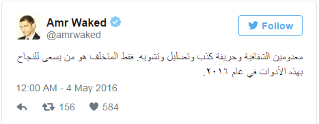 ثم ألحقها بتغريدة أخرى جاء فيها: “معدومين الشفافية وحريفة كذب وتضليل وتشويه. فقط المتخلف هو من يسعى للنجاح بهذه الأدوات في عام 2016”.