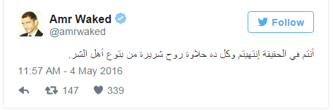 أما تغريدته الأخيرة، فكتب فيها: “أنتم في الحقيقة انتهيتم وكل ده حلاوة روح شريرة من بتوع أهل الشر”.