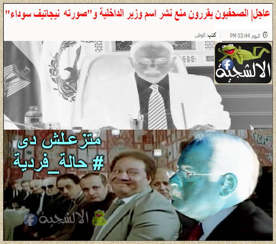 سخر رواد مواقع التواصل الاجتماعي "فيس بوك" و"تويتر"، من وزير الداخلية، عقِب قرار نقابة الصحفيين المصريين بمقاطعة أخبار الوزير وعدم نشر اسمه أو صورته، ووضعها كـ"صورة نيجاتيف".